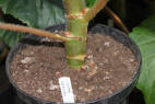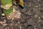 how the tuber has been pushed up the compost and part of the tuber is
