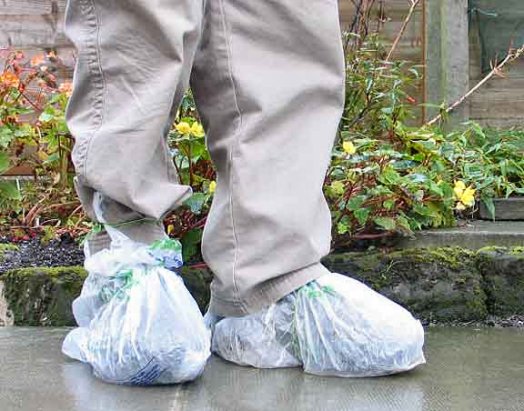 easier is to wrap your boots with a plastic shopping bag.