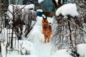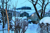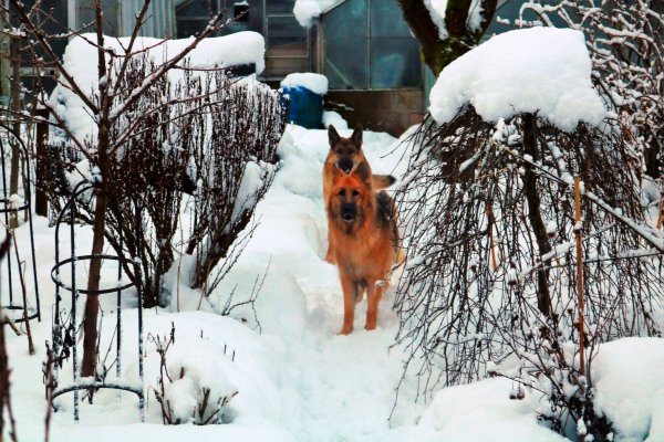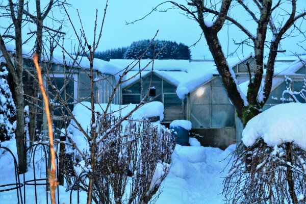 shovelling almost 18 inches of snow off the greenhouse roof. The dogs