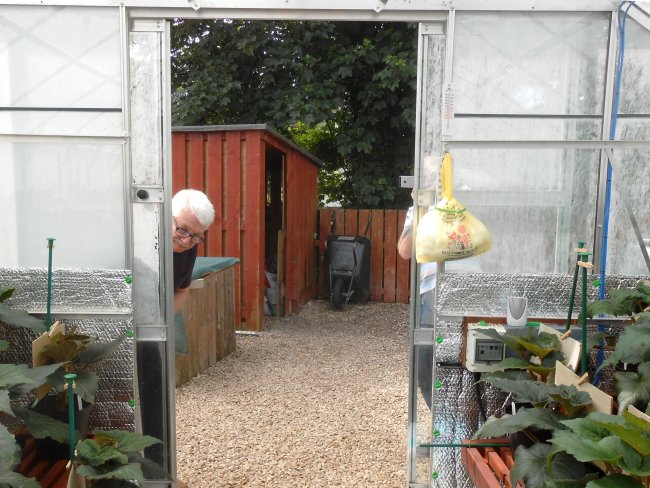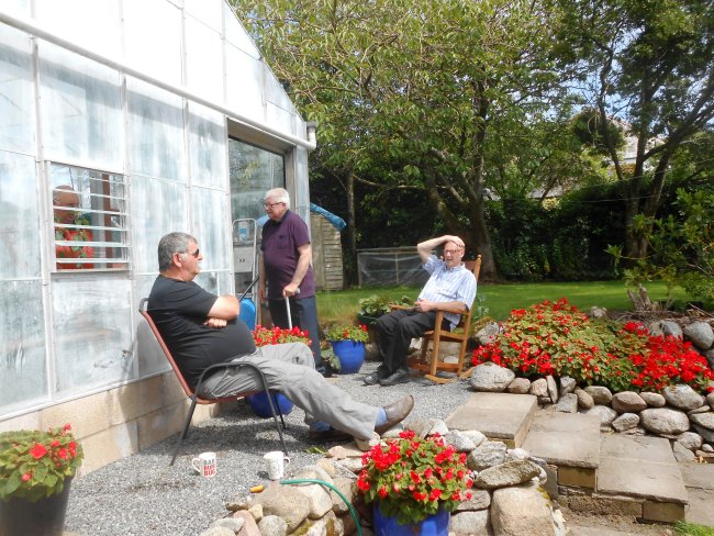in the main greenhouse, Ian and Robert basking in the sun – whilst we