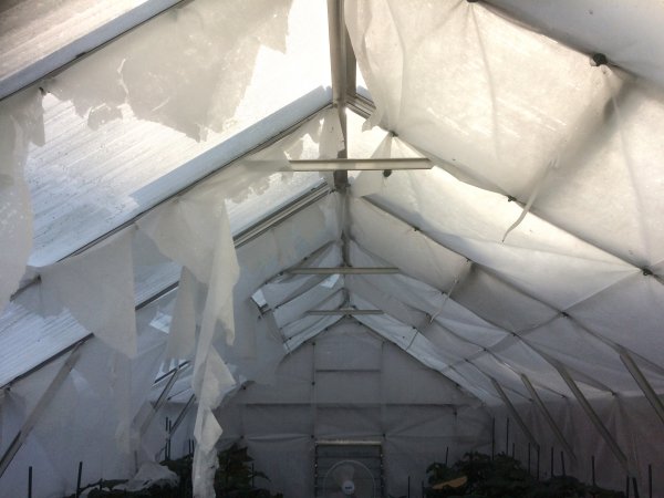 fleece that I use to line the insides of the greenhouses was badly